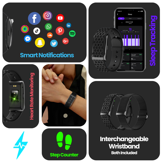 Introducing the Volt Fitness Tracker. Track your heart rate, count your steps, monitor your sleep, and stay connected with smart notifications. Built for your active lifestyle, it's IP68 certified for water resistance and features interchangeable wristbands to match your style.
